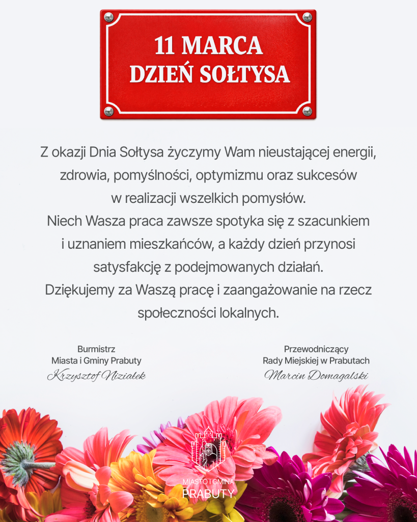 11 marca – Dzień Sołtysa 2026-03-11 11 marca – Dzień Sołtysa2026-03-10T10:05:43+01:00 Aktualności Niech każdy dzień przynosi satysfakcję i radość z podejmowanych działań. Wszystkiego dobrego! Pobierz artykuł w formacie PDF Podziel się: Share on X (Otwiera się w nowym oknie) X Share on Facebook (Otwiera się w nowym oknie) Facebook Share on Pinterest (Otwiera się w nowym oknie) Pinterest
