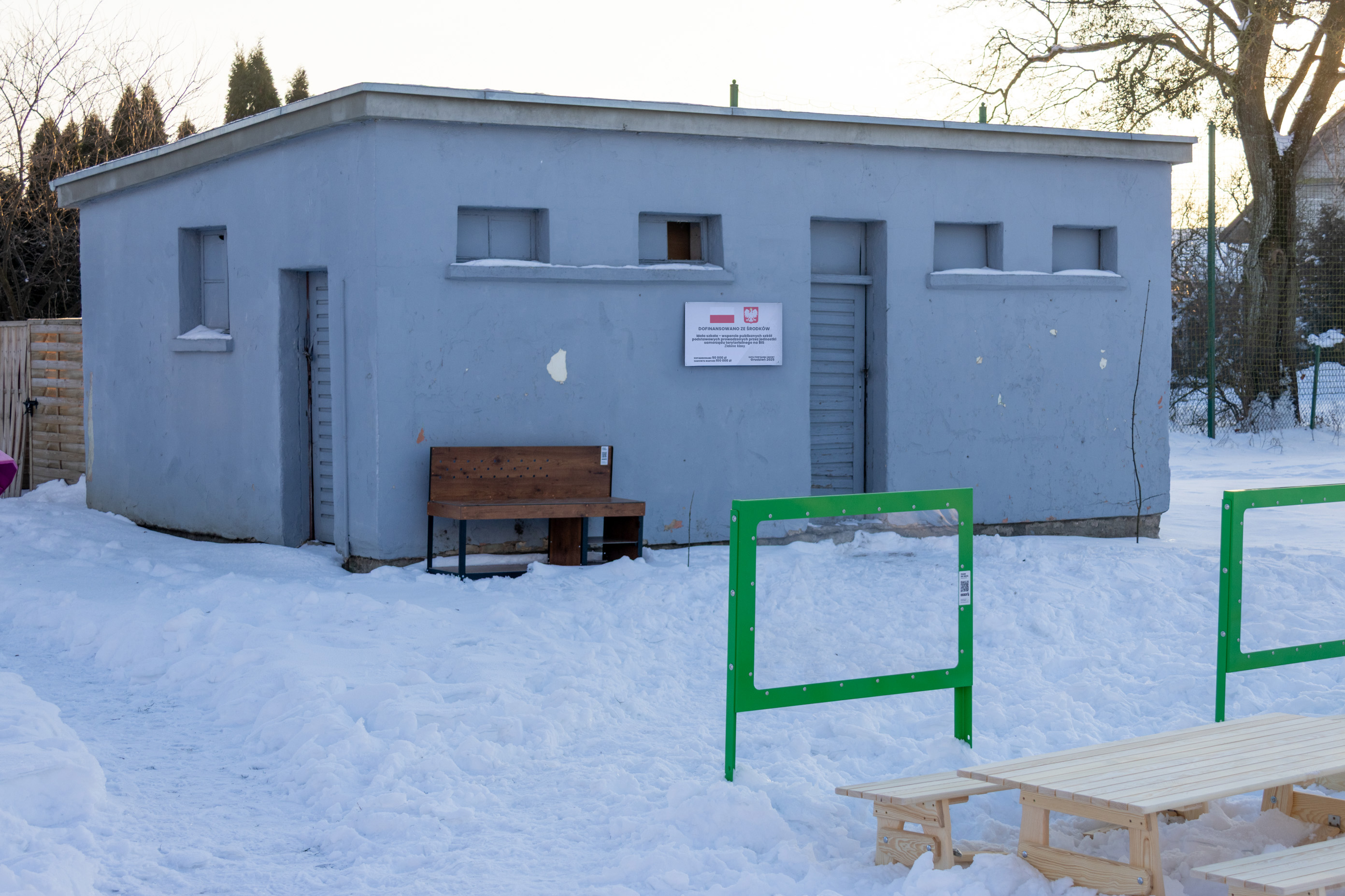 zewnętrznej szkoły poprzez utworzenie i wyposażenie stałej zielonej klasy – przestrzeni dydaktycznej na świeżym powietrzu. Zakres rzeczowy inwestycji obejmował montaż trwałych i bezpiecznych elementów infrastruktury oraz wyposażenia dydaktycznego, w tym m.in.: ławek, stołów, tablicy oraz urządzeń edukacyjno-sensorycznych (m.in. panel sensoryczno-muzyczny, Warsztat Eu-Geniusza, globus szkolny, tablica do rysowania, gry i pomoce edukacyjne). W wyniku realizacji projektu powstała w pełni funkcjonalna zielona klasa, umożliwiająca prowadzenie zajęć edukacyjnych, wychowawczych, rewalidacyjnych i terapeutycznych oraz wykorzystywanie przestrzeni jako miejsca wypoczynku uczniów w czasie przerw.